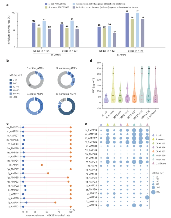 图4:体外抗菌肽抗菌疗效及生物学特性评估。