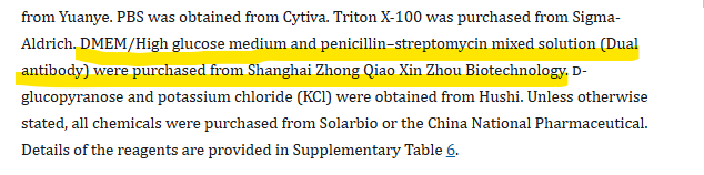 中乔新舟生物的产品DMEM高糖基础培养基(货号:ZQ-100 )和青霉素- 链霉素混合溶液(双抗)(货号:CSP006)参与了该项研究。