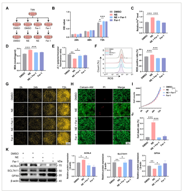 图4. Fer-1能拯救TM4细胞中NE诱导的铁凋亡。
